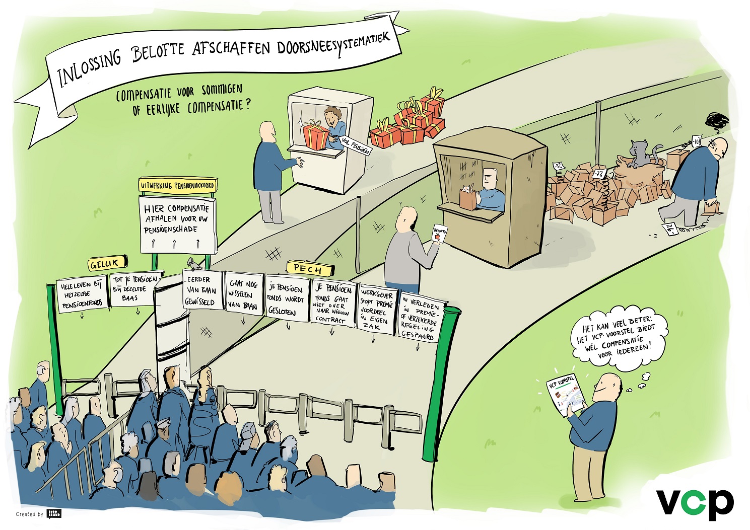 De VCP heeft zelf een goed alternatief uitgewerkt, een voorstel waar volgens de minister geen politiek draagvlak voor zou zijn. “Dat horen we dan graag van de Tweede Kamer zelf. Wij vragen de Kamer serieus naar ons voorstel te kijken. Onze oplossing pakt voor alle groepen wel goed uit en kost uiteindelijk geen geld. Het enige wat de overheid moet doen is het bedrag voorschieten. Het geld wordt tot op de laatste cent terugbetaald.”